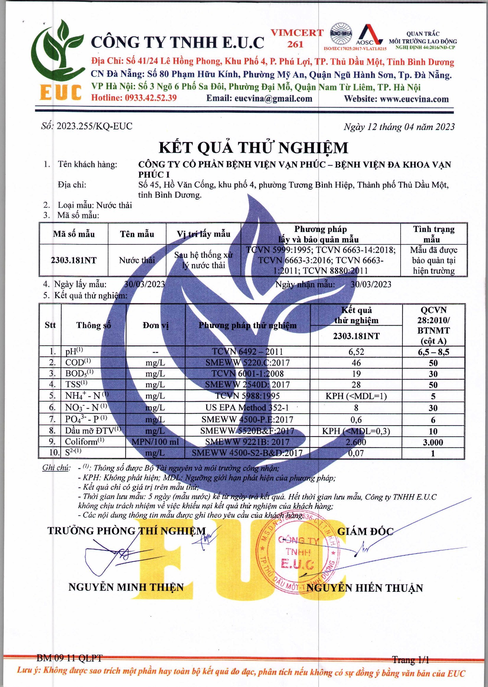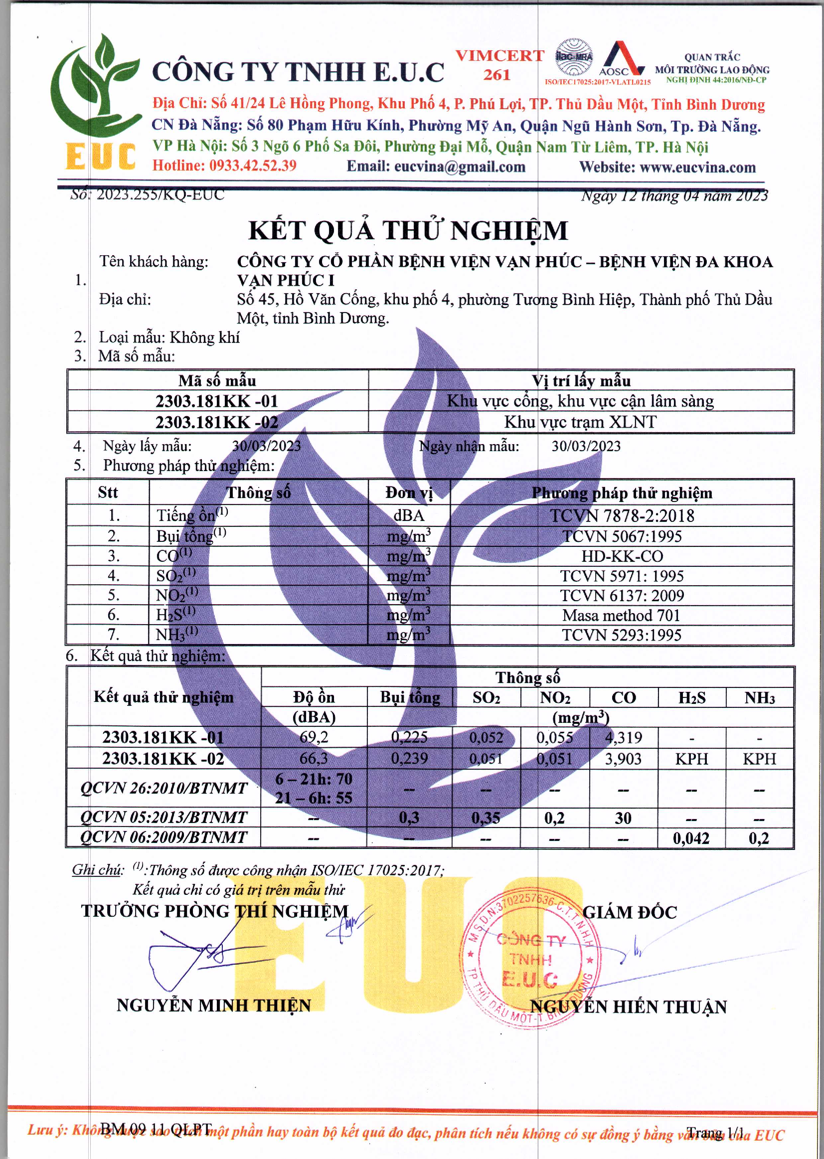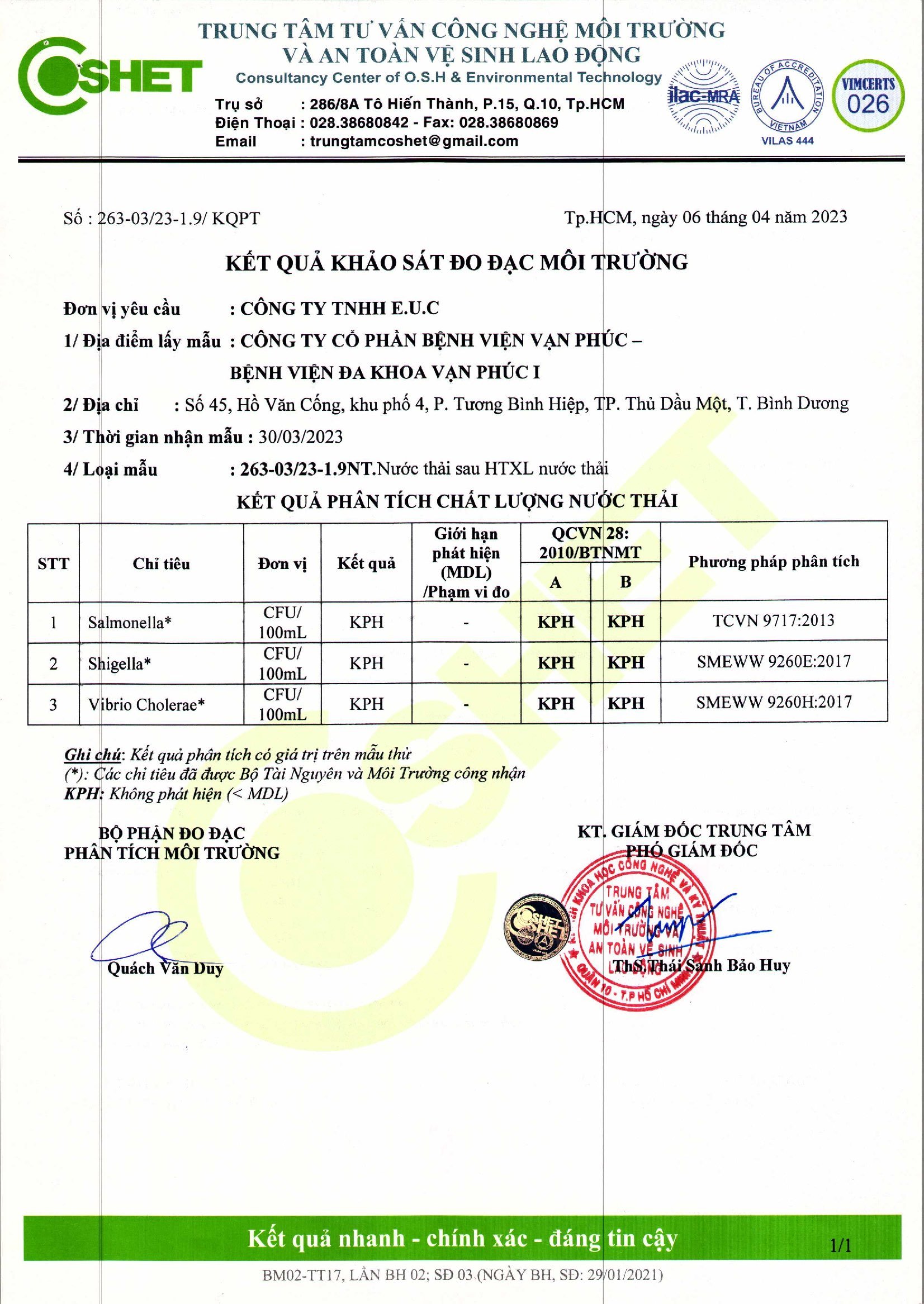 Kết quả quan trắc học quý I – 2023 Bệnh viện Hoàn Mỹ Bình Dương