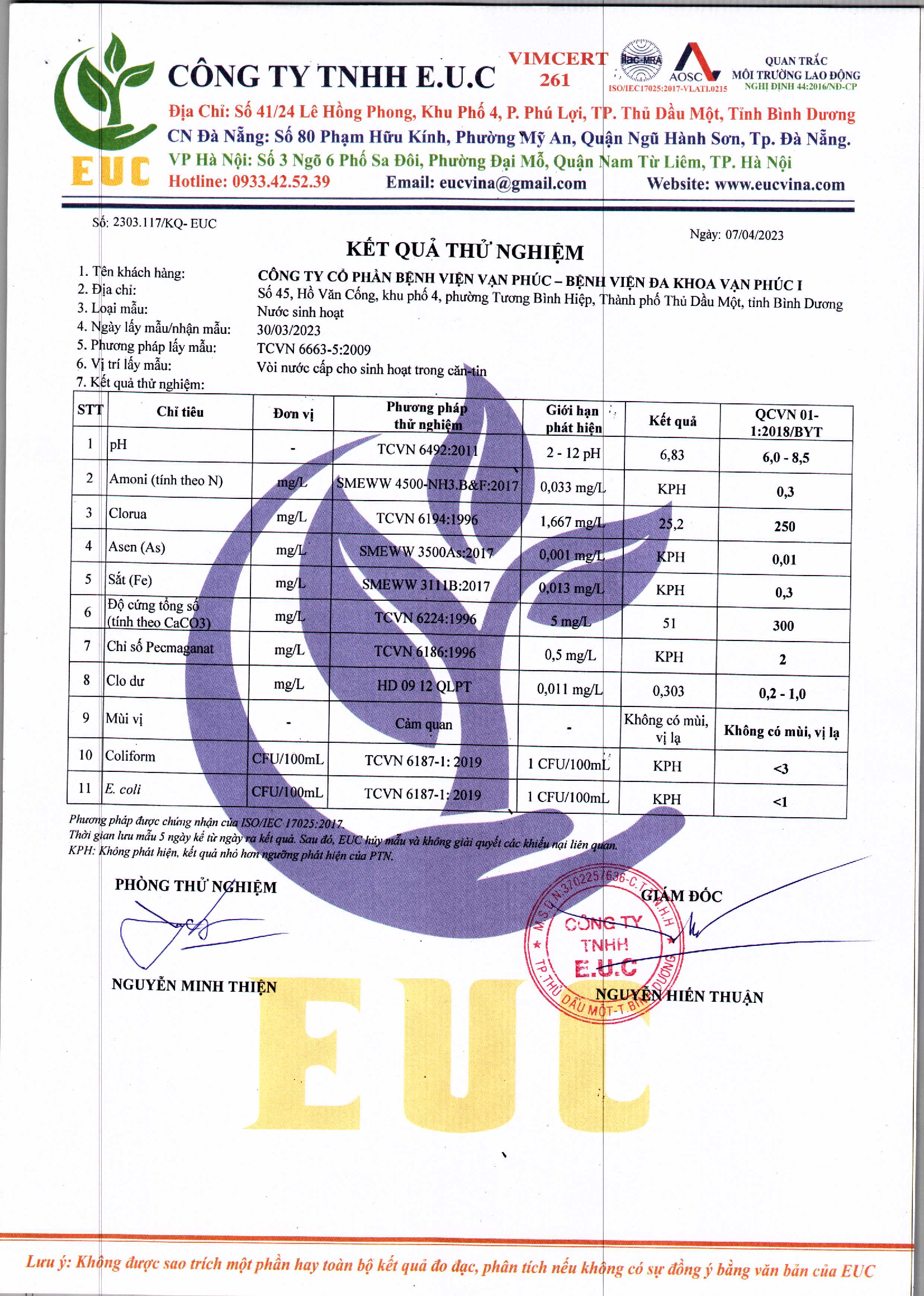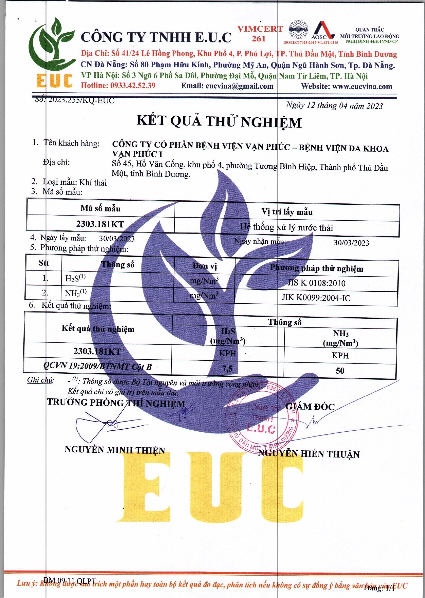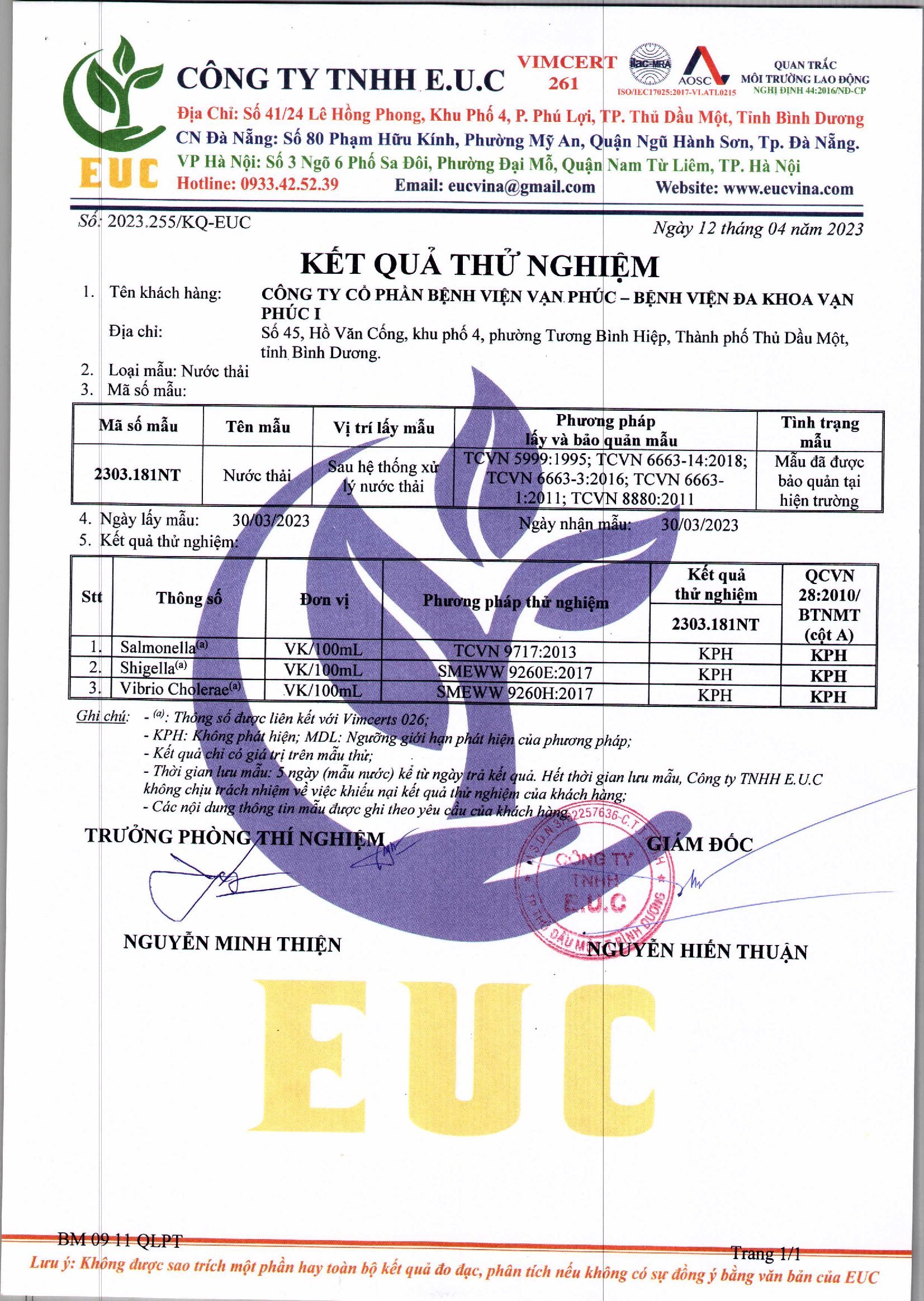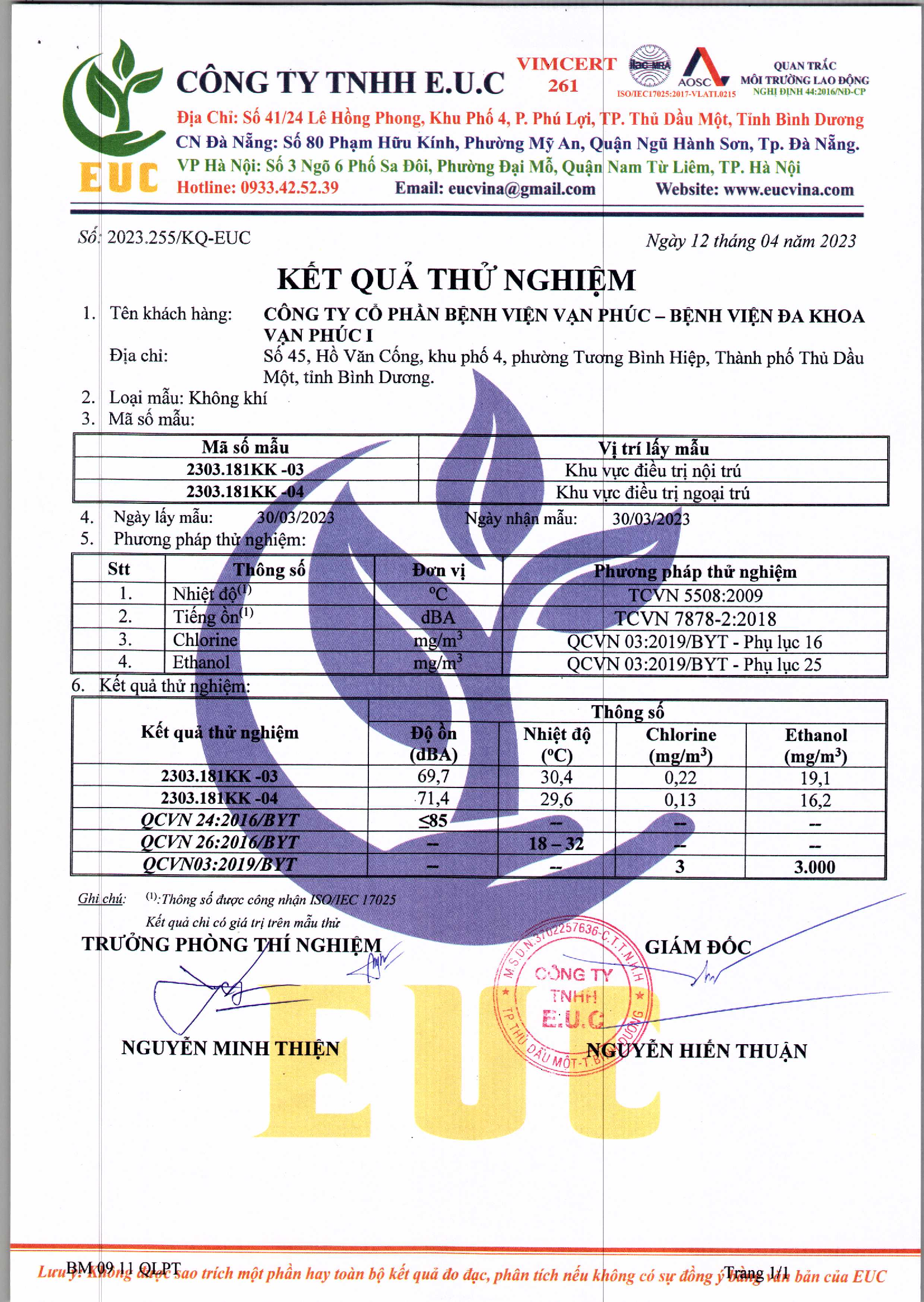Kết quả quan trắc học quý I – 2023 Bệnh viện Hoàn Mỹ Bình Dương