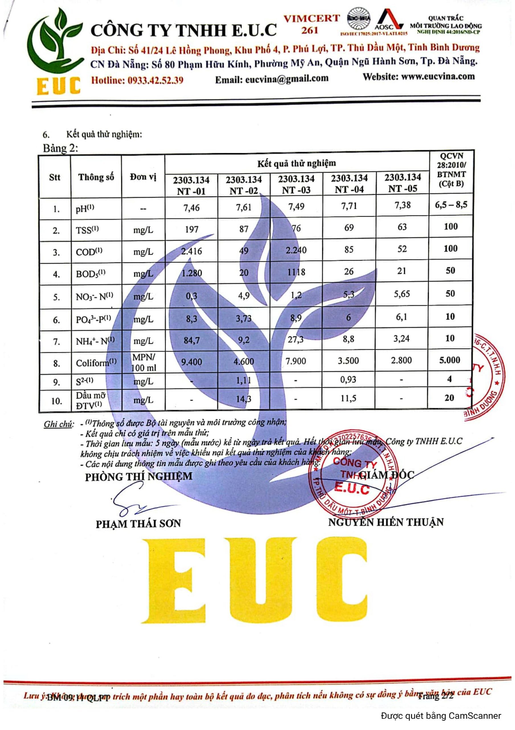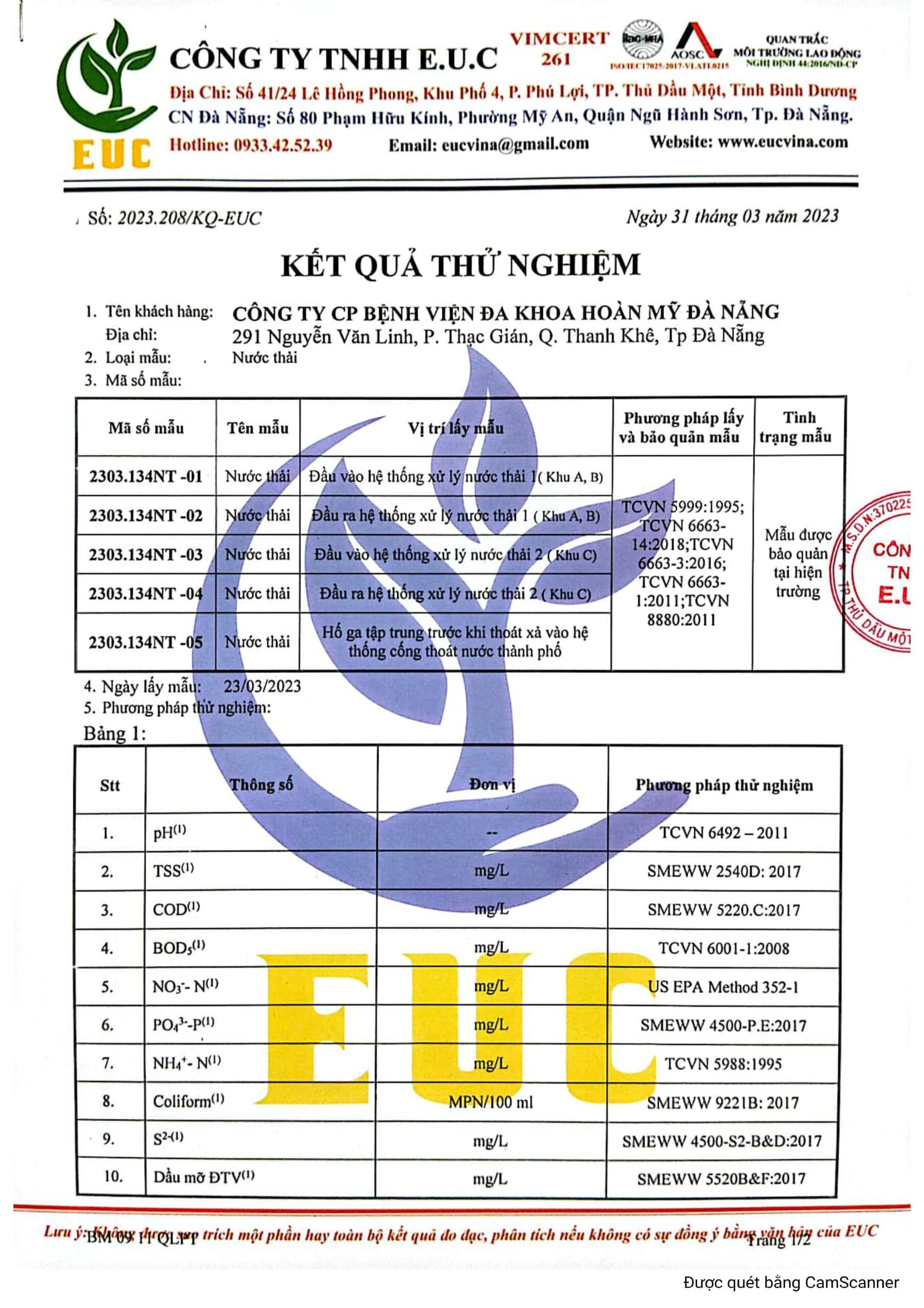 Kết quả quan trắc học quý I – 2023 Bệnh viện Hoàn Mỹ Đà Nẵng
