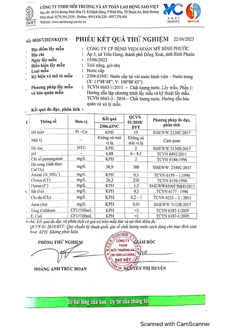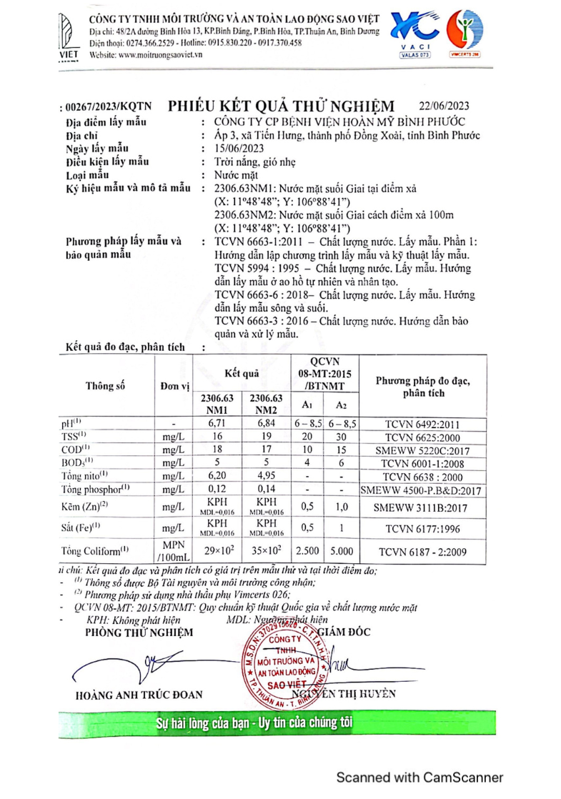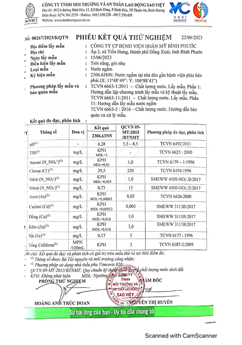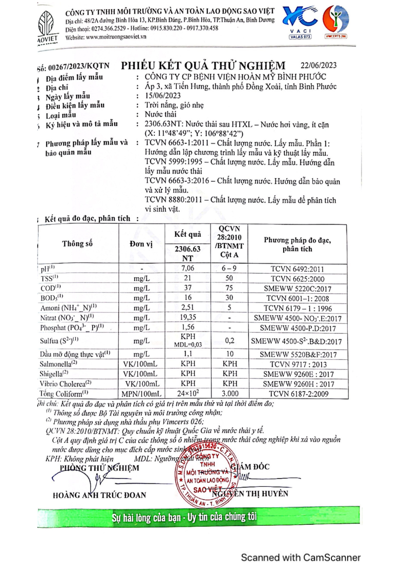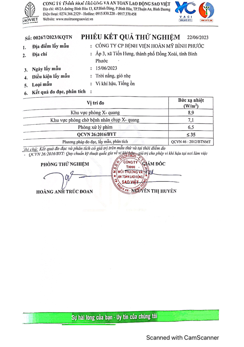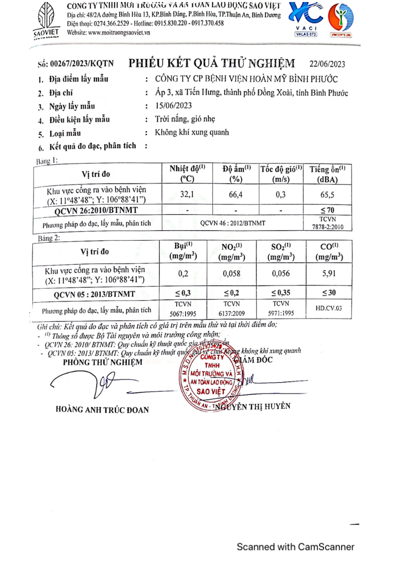 Kết quả quan trắc học quý II – 2023 Bệnh viện Hoàn Mỹ Bình Phước