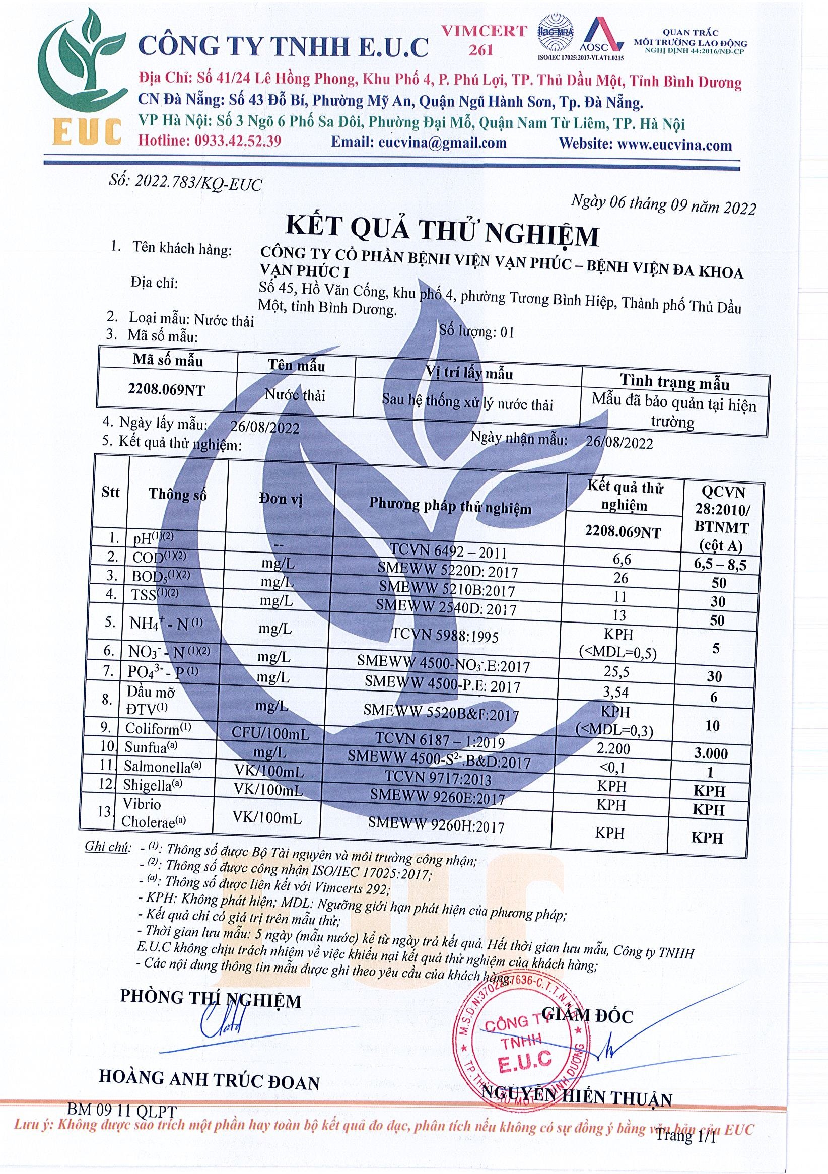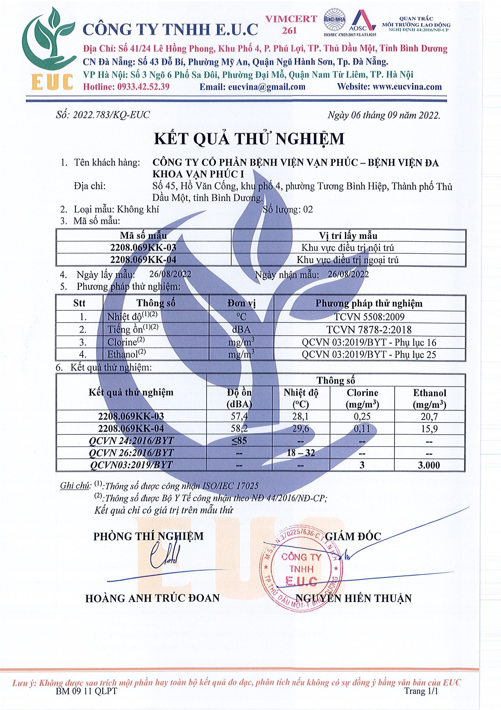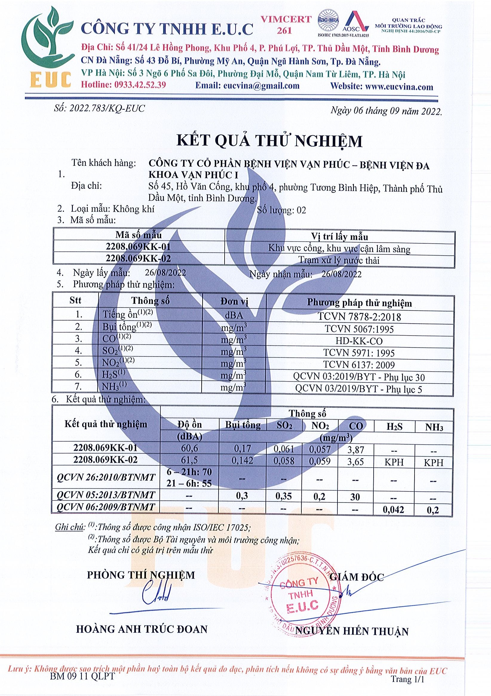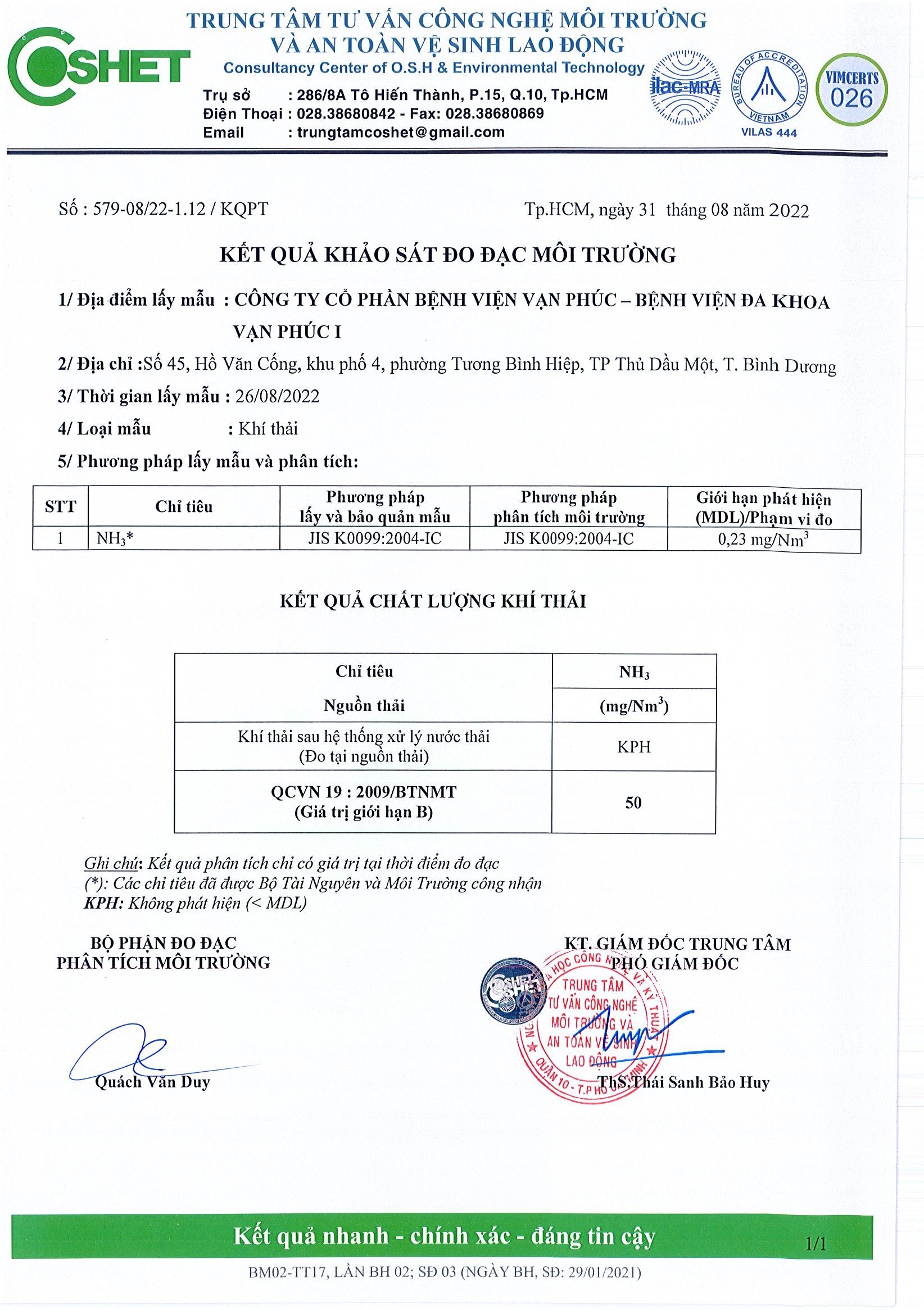 Kết quả quan trắc học quý III – 2022 Bệnh viện Hoàn Mỹ Bình Dương