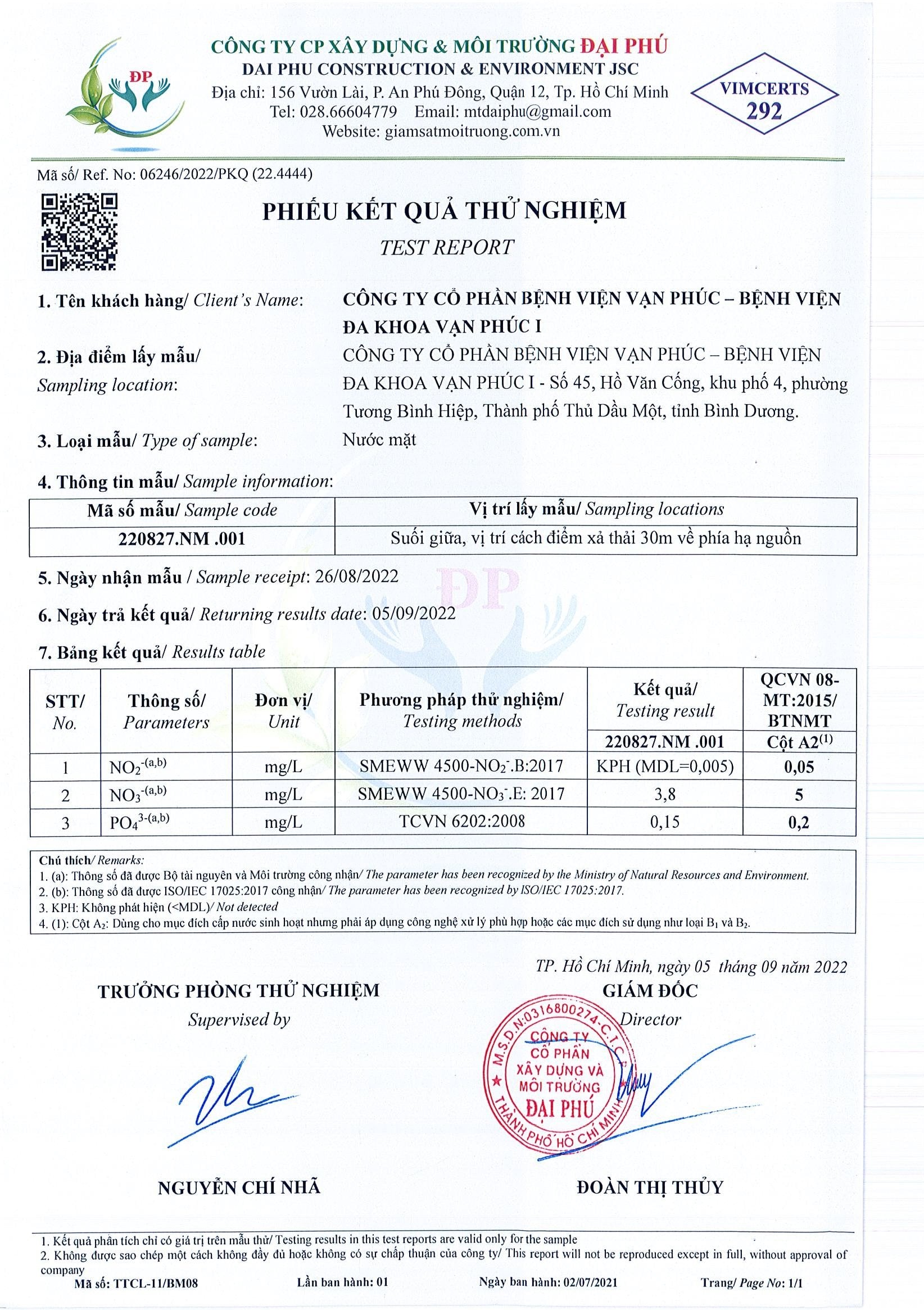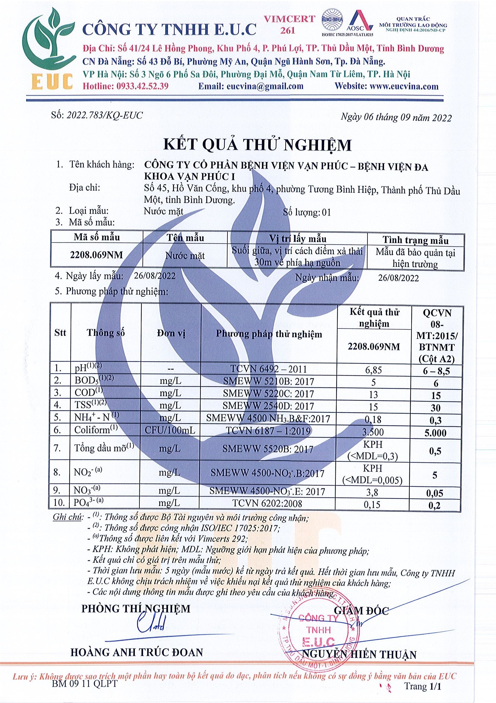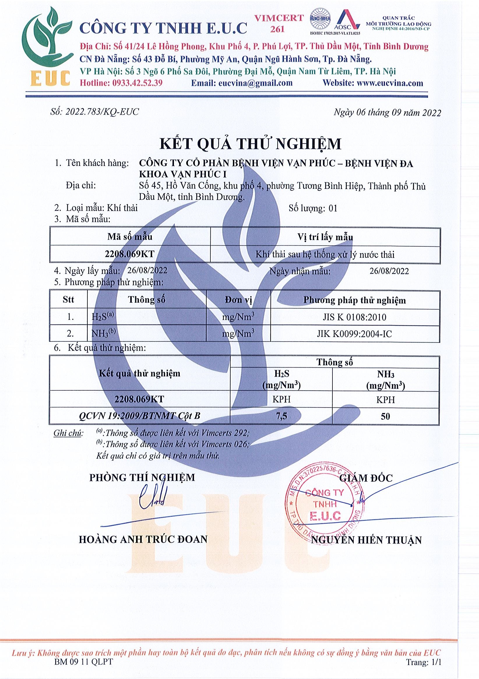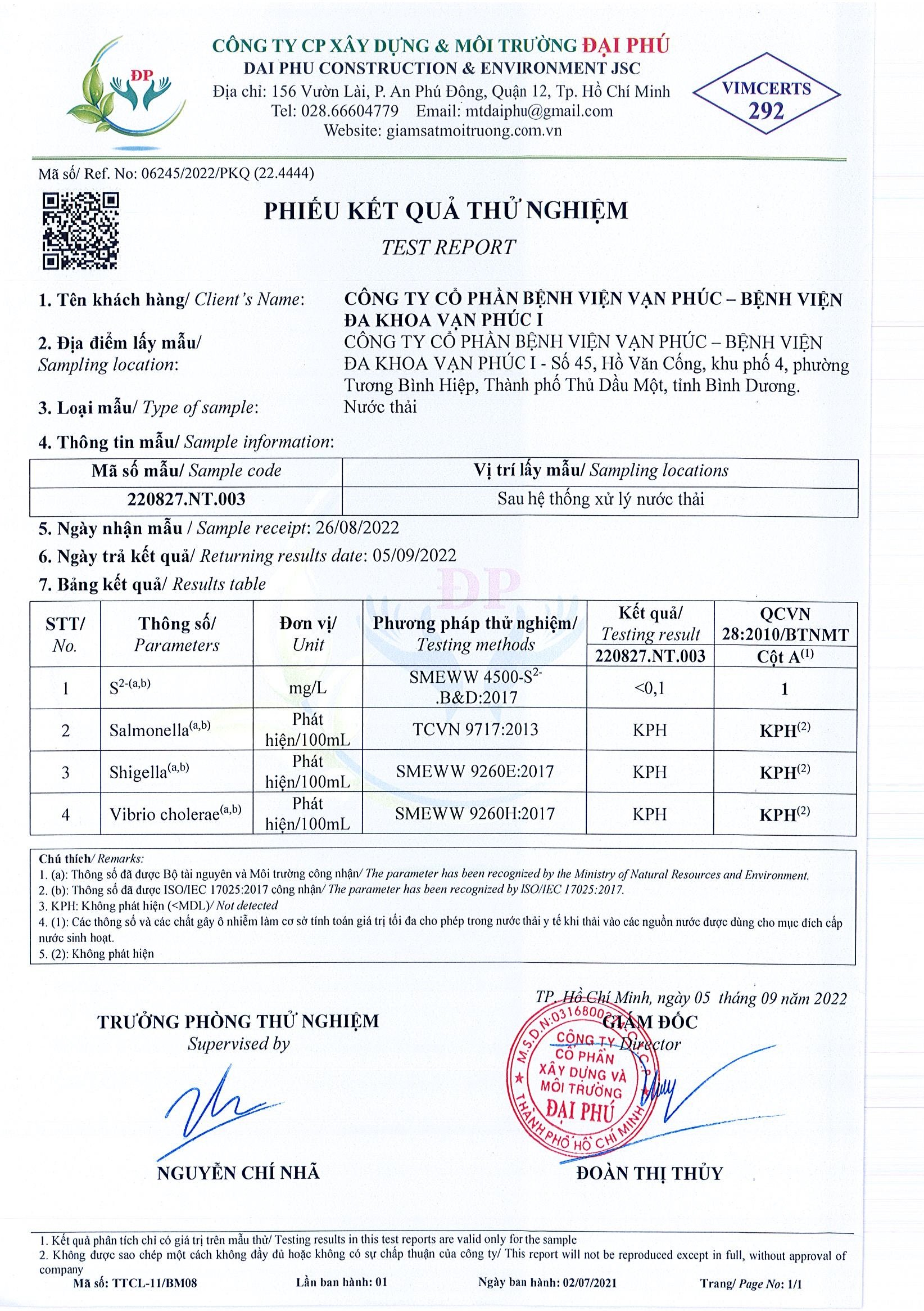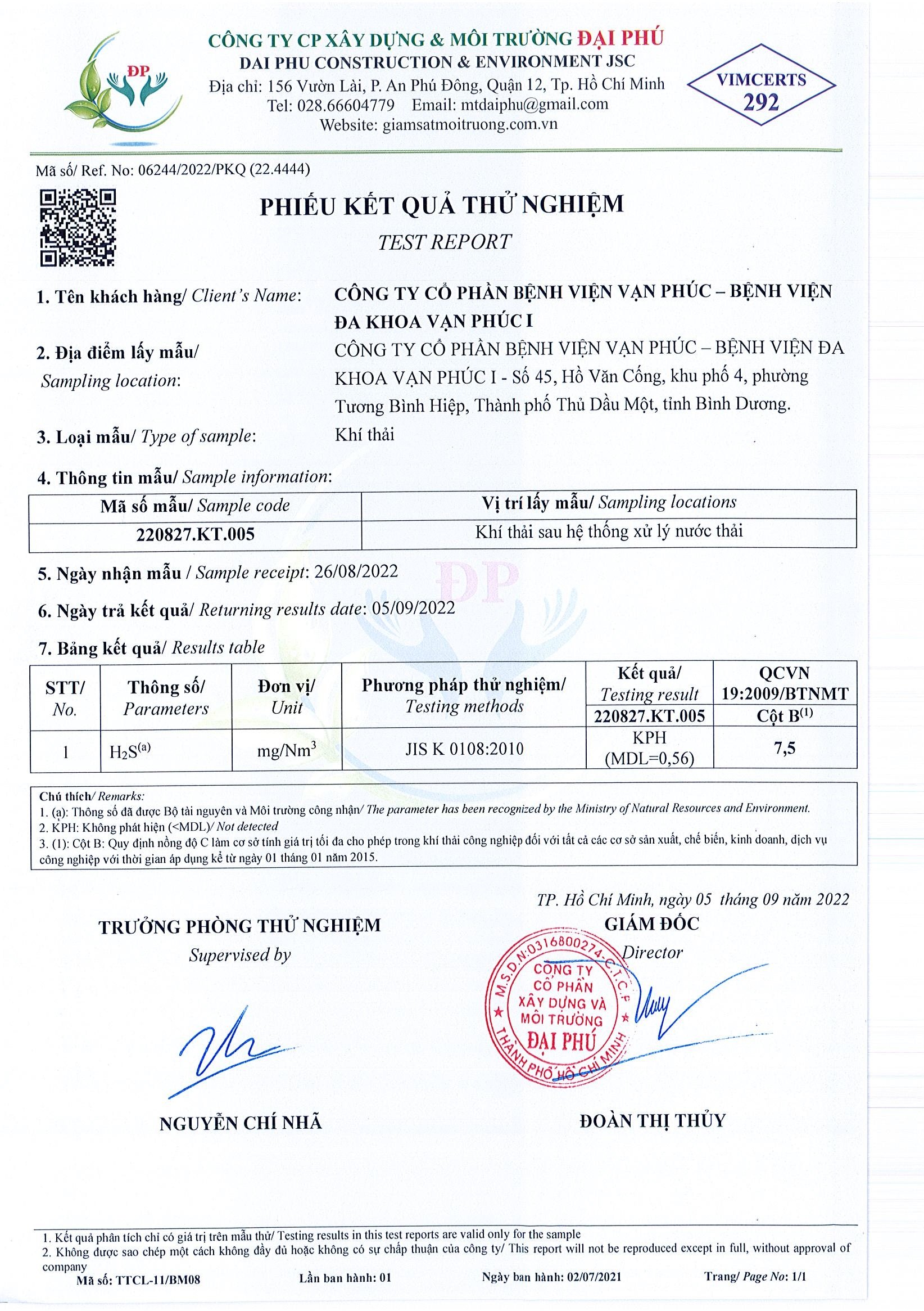 Kết quả quan trắc học quý III – 2022 Bệnh viện Hoàn Mỹ Bình Dương